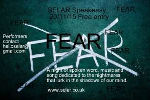 - - - - - - - - - - - - - - - - - - - - - - 2015-11-02 | | South East London Art Rooms created an event. 27 October at 18:02 · 20 NOV 2015 FEAR A night of Spoken word a music and song dedicated to the nightmares that lurk in the shadows of our mind. SELAR Speakeasy Fri 7:45 PM · South East London Art Rooms · London Adam Brody and Michał Grzebieniak are going South East London Art Rooms created an event. 20 Novemberat 19:45–22:00 Show Map South East London Art Rooms 17B Dartmouth Road, SE23 3HN London, United Kingdom Find Tickets Tickets Available www.selar.co.uk Please do join us and spread the word on NOV 20th. FEAR is here. Steven Rogers Yael Biran Günsel Djemal Elüstün Eleni Mylona Joe Duggan Nina Walsh Nicole Garnier Jono Podmore Tim Wright Duncan Reekie Tal Yakobovitch Jakubowiczova William Anthony Hatchett The last speakeasy was a dream this could be a nightmare. Free entry. Money raised for The Passage Charity to help the homeless.