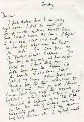 - - - - - - - - - - - - - - - - - - - - - - 2013-12-02 | | (reply) I, too, am certain that it is harder and harder to stay afloat. The water is fast and deep and my pockets full of stones. I feel I have surrendered to a life I cannot breathe or bare or wake up to any more. I tried like you tried and failed like you failed and without you I would have thought that hope is still a pear waiting to be picked in a Sussex garden. I feel I did not understand this until you asked Mrs Dalloway to visit and she brought cake and we had tea and spoke about parties and vegetables. I'm afraid I've been buying the flowers myself for far too long or so the voices say. They are carnations and hydrangeas and perhaps lilies and sometimes I'm not certain which ones to choose, at all. I wanted to thank you for the other day when I heard the Big Ben chimes and remembered what you once said to me in London: *"The leaden circles dissolve in the air”. They did and I cried for no reason, no reason at all, because there was no reason left to cry for. If anyone could have saved me it wouldn't have been you. You opened my eyes and now, on sunny, monotone afternoons, I can even make up the face these hands are firmly holding under the surface. C *excerpt from Mrs Dalloway by Virginia Woolf